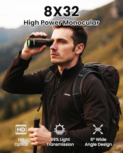 - 8X MAGNIFICATION & WIDE FIELD OF VIEW: Capture crisp, detailed views of birds, landscapes, and distant scenes with 8x magnification and a 32mm objective lens; enjoy immersive viewing with this compact high power monocular telescope for hiking, ghost hunting equipment, wildlife watching, hunting gear, camping, and travel