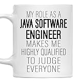 [Perfect Gift For Java Software Engineer Professionals]: Honor a Java Software Engineer’s expertise with this 11oz white ceramic mug featuring the humorous quote - My Role As a Java Software Engineer Makes Me Highly Qualified To Judge Everyone. Ideal for work or gifting. [Durable Ceramic Design]: Crafted from premium white ceramic, this 11oz mug is microwave-safe and dishwasher-safe, perfect for daily coffee or tea in any workplace. [Comfortable Size For Workdays]: With an 11oz capacity, this mug fits seamlessly in an office or home setting, designed with a sturdy handle for Java Software Engineer enthusiasts. [Long-Lasting Vibrant Print]: The witty quote is printed on both sides using advanced sublimation technology, ensuring the design remains bold and fade-resistant over time. [Versatile Gift For Any Profession]: A thoughtful present for Java Software Engineers, coworkers, or friends, suitable for birthdays, holidays, or to celebrate their leadership across various careers.