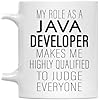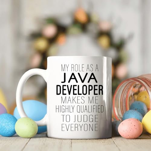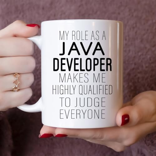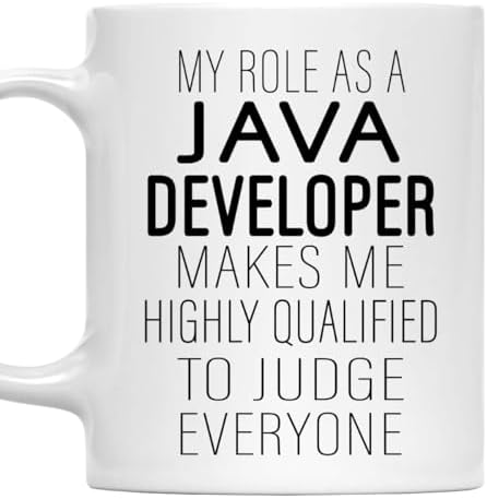 - [Perfect Gift For Java Developer Professionals]: Honor a Java Developer’s expertise with this 11oz white ceramic mug featuring the humorous quote - My Role As a Java Developer Makes Me Highly Qualified To Judge Everyone. Ideal for work or gifting.