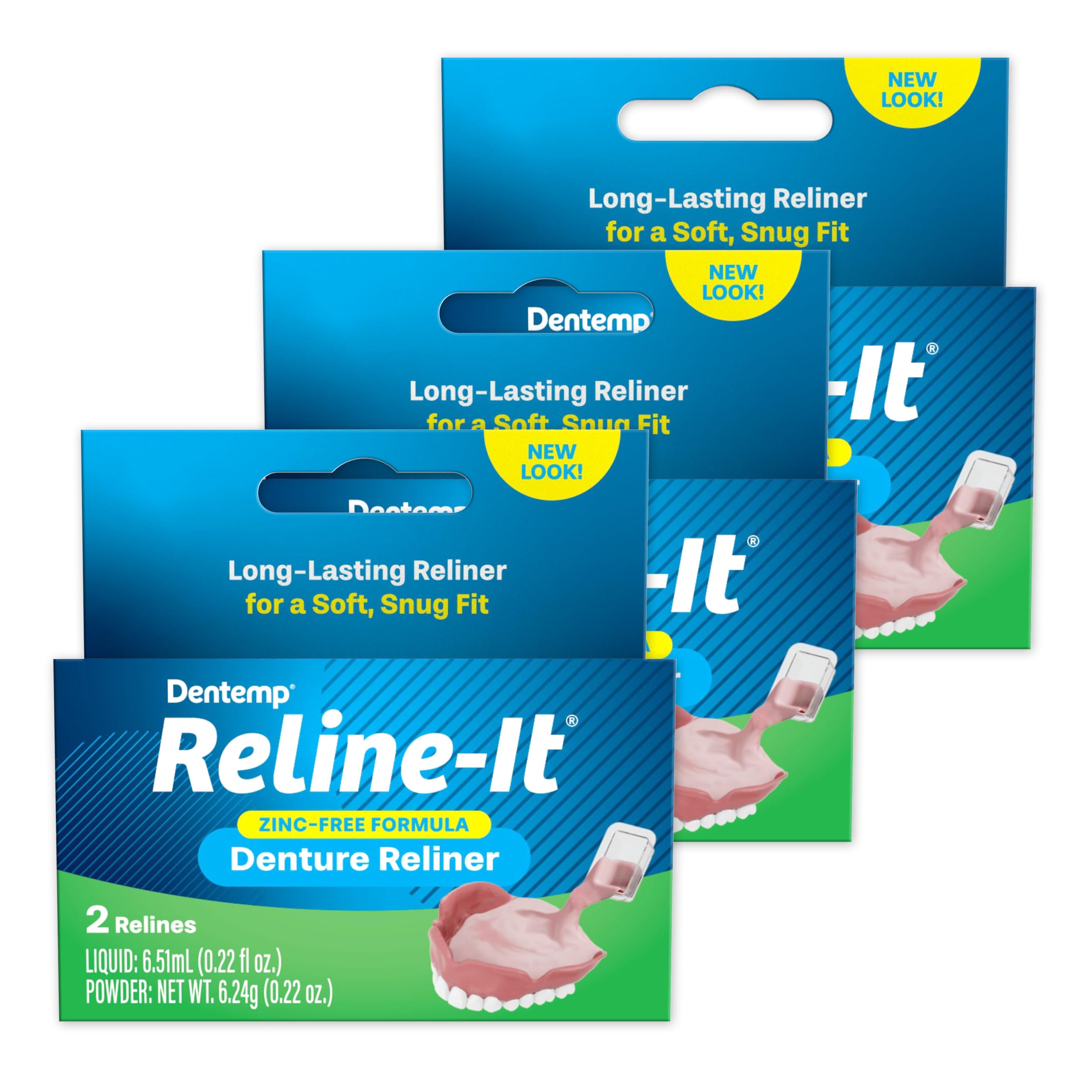 - ADVANCED FORMULA FOR QUICK RESULTS: Reline-It features an advanced, zinc-free formula designed for quick, effective results. The soft yet firm material is ideal for both upper and lower dentures, providing a custom, long-lasting fit that reduces irritation. No need to visit the dentist—just use Dentemp for a natural-looking smile.