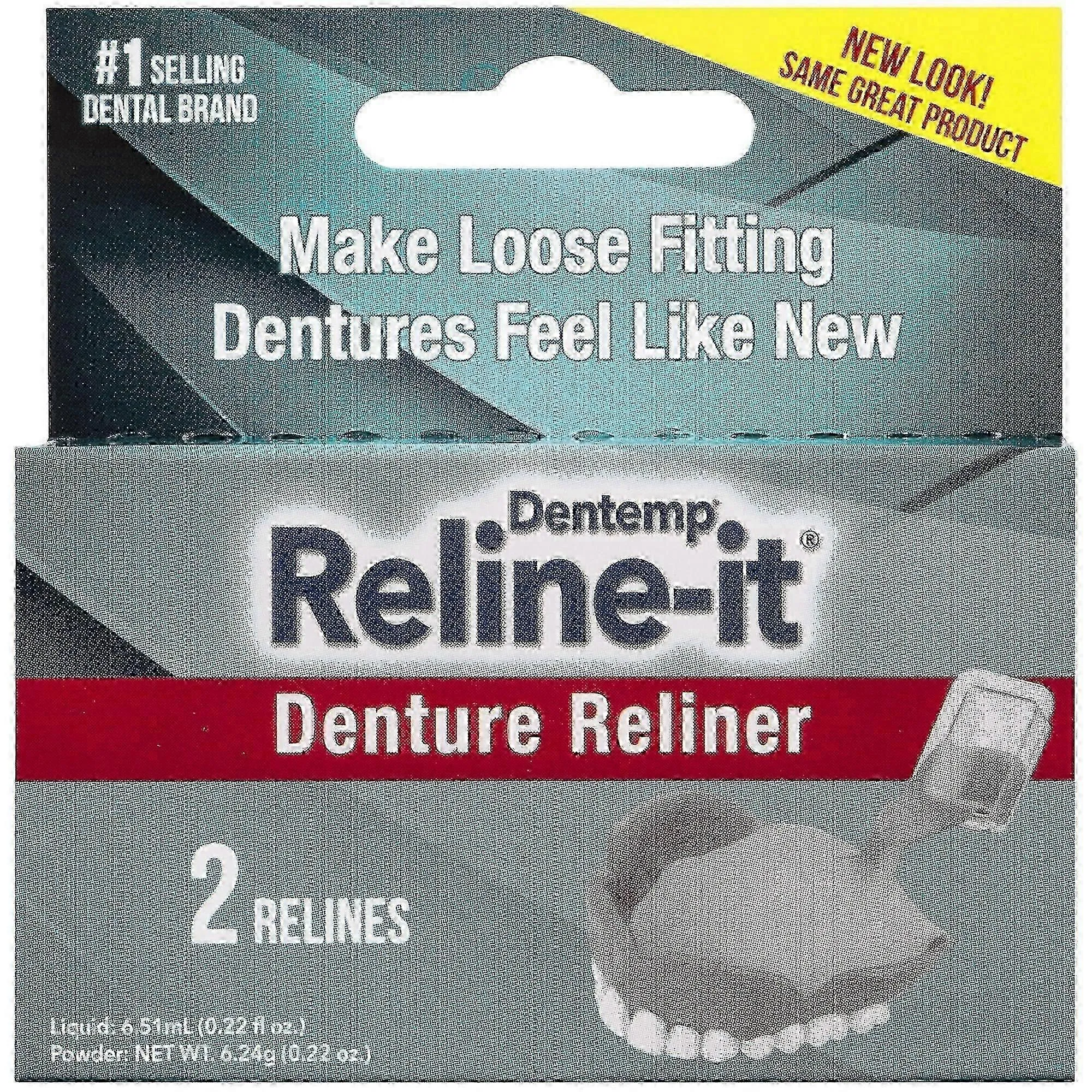 - DENTURE RELINER FOR A PERFECT FIT: Dentemp Reline-It restores your dentures to a like-new fit, offering an easy, affordable solutions for loose dentures. Unlike thick layers of denture adhesive, cushions, or strips that can slip, wear out, or cause discomfort, Reline-It tightens and cushions your dentures for a secure, stable, and irritation-free fit.