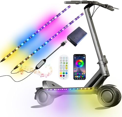 - Multi COLOR CHANGING SYNC WITH MUSIC-Scooter Night Light colorful and durable, the brightness of the lights can be adjusted and offer millions different colors.Bluetooth strip light Music has a smart music mode, built-in sensitivity adjustable microphone, you can choose any music to beat with it, then color will changing accordingly.
