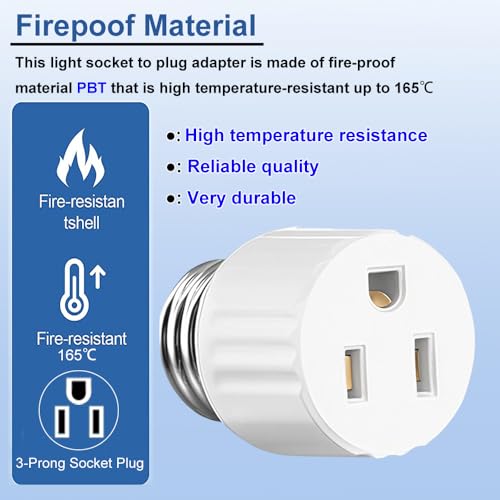 - 【Multi functional adapter】: This 3 Prong Light Socket to Plug Adapter can convert standard lamp sockets into three pin sockets, making it ideal for use in situations where there are not enough sockets. It not only supports 2-pin and 3-pin plugs, but also can withstand up to 1250W of power, meeting the needs of most household and industrial appliances