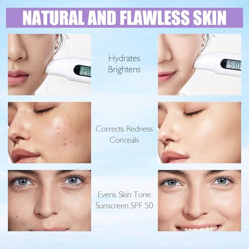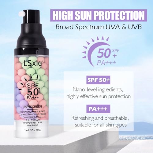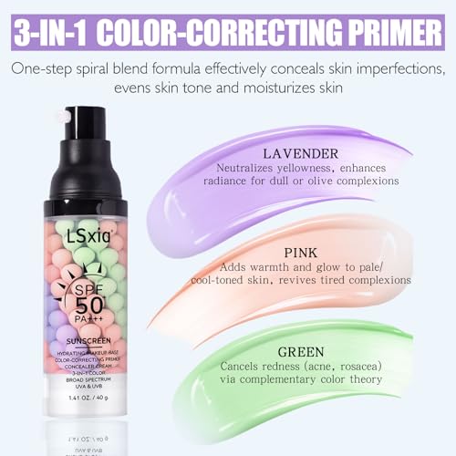 3 In 1 Primer for Face Before Makeup, SPF 50, Tinted Moisturizer Sunscreen Isolation Cream, One Step Color Corrector Makeup Primer, Color Correcting Concealer Oil Control, Base de Maquillaje, #01