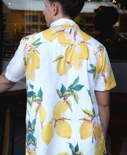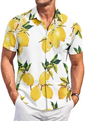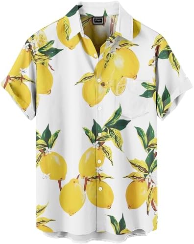 Men's Hawaiian Floral Print Button-Down Shirt, Tropical Floral Short Sleeve,Beach Party Shirt