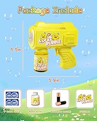 - 【Great Children's Toy &4 Bags Bubble Solution】 The bubble gun is great for boys and girls ages 3, 4, 5, 6, 7, 8, and even adults. Including 1 bubble bottle and 4bags of bubble solution refill, put two bags of bubble solution refill into the bottle and inject water into the bottle. Just click the trigger, and the bubble machine will fire tons of colorful bubbles, giving your children endless joy and cheer.