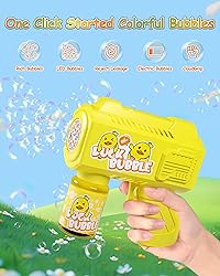 ⭐【Kids Bubble Machine & 10 Pieces Bubble Solution】ACCOF bubble gun is great for 3, 4, 5, 6, 7, 8 years old boys and girls, and also good for adults. It Includes 1 bubble bottle and 10 pieces of bubble solution, put two bubble refill bags into the bottle and inject water, just click the trigger and the bubble machine starts to shoot colorful bubbles, giving children endless joy. ⭐【Rich Bubbles and Dreamy LED Lights】This automatic bubble gun equipped with a powerful motor, emits more than 6000 colorful bubbles per minute. The bubble blower is equipped with multiple LED lights that emit bright lights at night, enhancing the visual appeal of the bubble gun and creating a more dreamy and wonderful atmosphere. ⭐【Certified and Easy to Hold】Compliant with the children's toy safety standards of the United States and European Union, ACCOF bubble gun obtained CPC, ASTM, and CPIA certifications. It is friendly to children and pets, you can use it confidently. Ergonomically designed make children feel comfortable to hold it. The sturdy structure ensures not easily to be damaged in frequently use. ⭐【360 Degree Leak-proof Design and Durable Material】ACCOF Bubble Gun comes with 360-degree leak-proof, the body and bottle are perfectly matched, so you never have to worry about liquid leakage even when rotating 360 degrees. Our bubble gun is made of high-quality ABS material and a round design, the surface is so smooth that it protects the baby's hand from injury or scratches. ⭐【Best Gift and Widely Used Outdoor Toy】The colorful bubbles bring endless fun, creating a romantic atmosphere and doubling the joy. This bubble machine is the best gift for boys, girls, and children. This bubble toy is great for birthday parties, outdoor activities, shows, camping trips, parks, backyards, lawns, seaside, Easter, Halloween, and many other occasions.