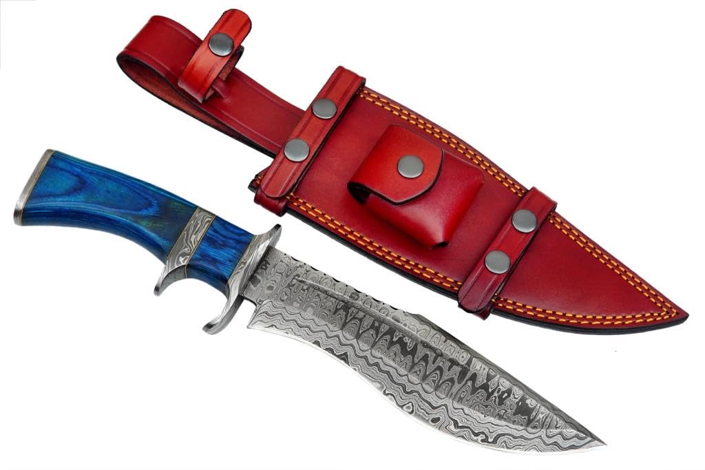 Over all length 15 inches== Blade length 9-10 inch== handle length 5-6 inch== Handle material Blue colour wood== Thickness 3-4mm== Sheath Vegetable tanned Cow leather=== =Great piece of art, brought by NOORAKI, combines stunning rock solid thick blade with gorgeous handle Wide Application: various , hunting, survival, tactical, industrial Ram Horn Handle,american made hunting knifes quality hunting knife bowie+knife damascus neck knife with sheath bowie knife made in usa bowie knife stag handle bowie knife hand made damascus cowboy bowie damascus full tang fixed blade damascus steel knife handmade fixed blade knife kukri damascus steel damascus steel knife fixed blade horizontal carry knife sheath hunting knives with sheath full tang knife with sheath handmade knife large bowie knife full tang knife pocket bowie pirate knife longhorn bowie