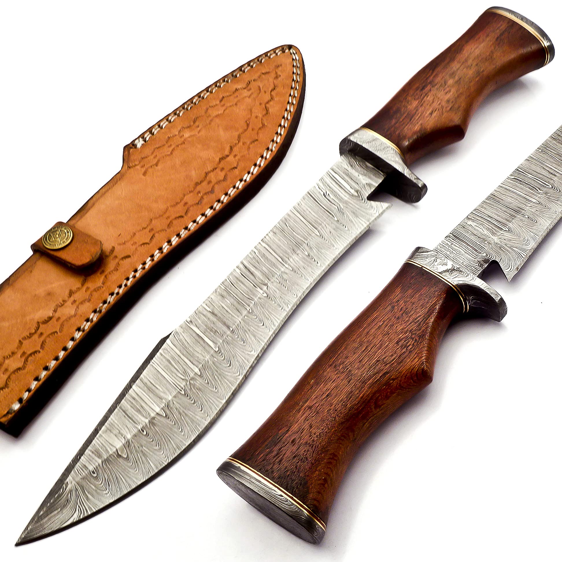 NOORAKI - 15″ Damascus Bowie Knife with Sheath | Hand Made Hunting Knife - Fixed Blade Long Bowie Knives - Ideal for Survival ,Chopping, Camping, Outdoor Gift for Men |Tactical Knife Wood Handle (Brown)