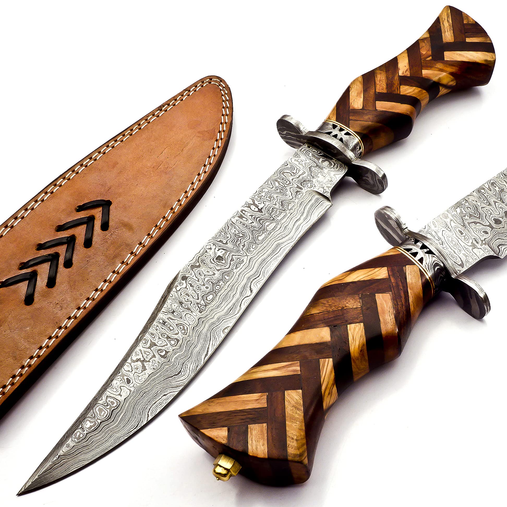 - ✅ BEAUTIFUL KNIFE FOR HOME DECOR & GIFTING: Perfect Damascus Knife Gift for Men & Women. This multi-function 15 inch bowie knife is a 10-inches blade with, 5-inches handle. Nooraki fixed blade knives with sheath are lightweight and good-looking, making it a perfect home decor and thoughtful gift choice. These knives with sheath are also for skinning, cutting, chopping, hunting, camping, trekking, and more