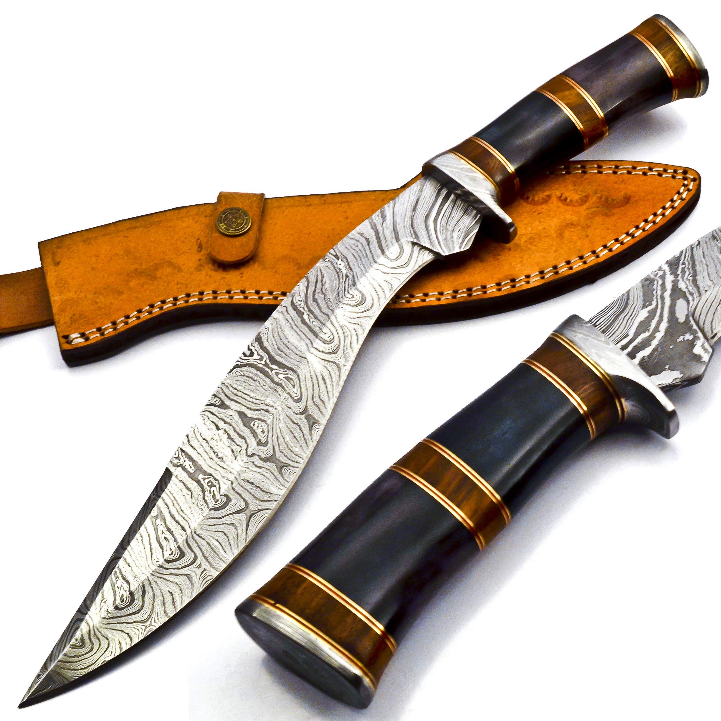- ✅ HAND-FOGED KNIFE WITH SHARP EDGE: This Tactical camping Bowie knives for men is carefully hand-hammered and features a handle made using bull bone and horn. These tactical knives have excellent strength and can retain their sharp edge after cutting, chopping, piercing, or throwing on most surfaces