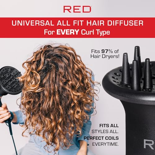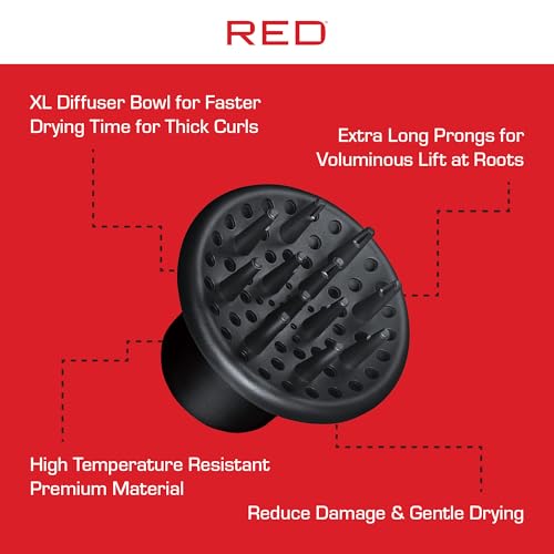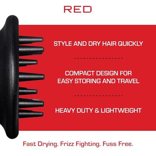 Red by Kiss Universal Hair Dryer Diffuser, Heavy Duty Rubber Grip, Long Prongs for Volume & Root Drying, Compact Design Fits 99% Dryers for Fast Drying & Shine Boost and Bouncy Curls