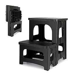 WEIGHT CAPACITY: Heavy-duty construction supports up to 300 pounds, making it suitable for various household tasks, making it suitable for adults and everyday household use, folding step stool is measured 13"L×15"W×17"H PORTABLE DESIGN: Lightweight and foldable construction allows for easy storage and transportation between rooms TWO-STEP CONFIGURATION: Features dual stepping platforms for reaching higher areas safely and comfortably NON-SLIP SAFETY: Enhanced with non-slip surfaces on both steps and feet to prevent accidents during use VERSATILE USE: Perfect for kitchen cabinets, bathroom storage, RV storage, office supplies, and other hard-to-reach areas