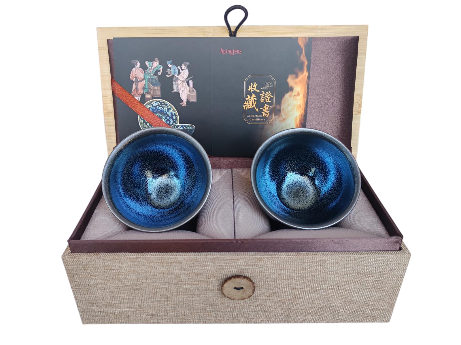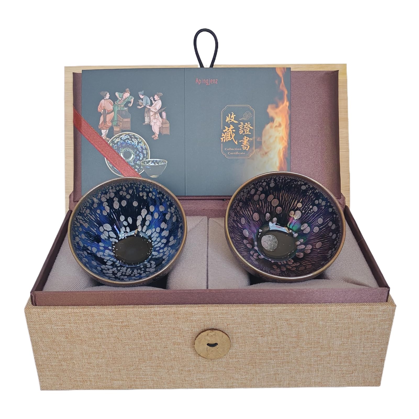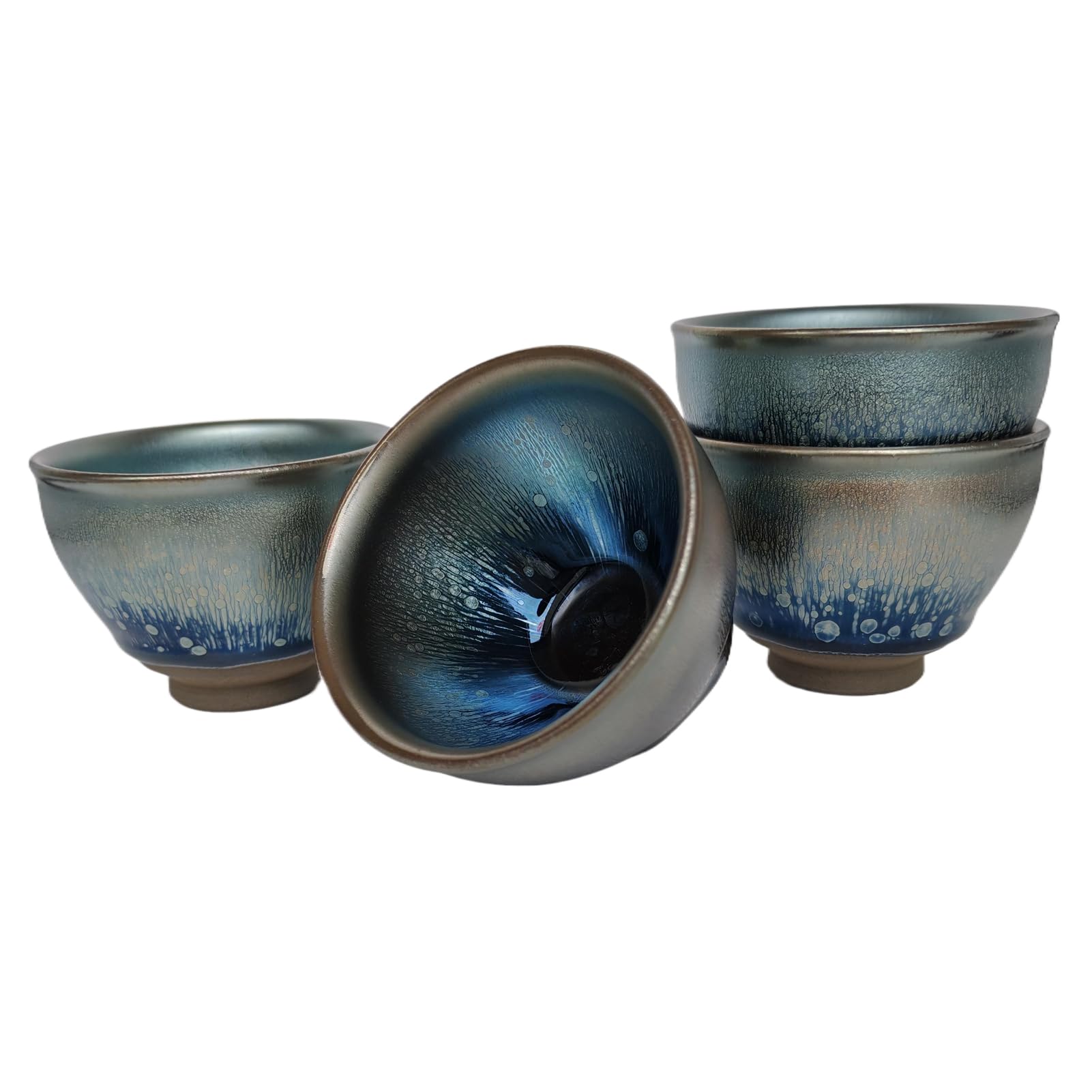 - THE MYSTICAL CHARM OF JIAN ZHAN TEA CUPS: JianZhan is the gifts from the divine—each piece is unique, and no two Jian Zhan cups in the world are exactly the same. This is because their glazes are the result of natural kiln transformations at high temperatures. When you receive these four "Starry Sky" Jian Zhan cups, you may notice that while they share a similar overall appearance, each one is subtly distinct, each one has its own unique beauty, and these unique beauty belongs to you only