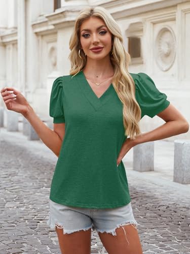 Womens Beach Vacation Summer Tops Cute Blouses Spring T Shirts Casual Dressy Tees Fashion Trendy Clothes 2025 Dark Green, S-2-old