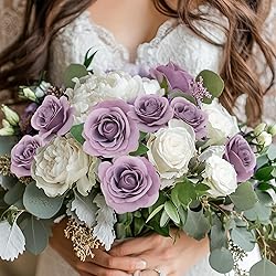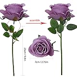 Realistic Roses Appearance: Our purple roses bring lifelike elegance to your space effortlessly. Enjoy the charm of fake roses without watering or maintenance, adding a warm and cozy atmosphere Size and Package: Each set includes 12 purple artificial flowers heads and 12 flexible stems with 2 green leaves. The faux roses are 25 cm (9.8 inches) long, and the lilac flower heads are about 8 cm (3.14 inches). Arrives with flowers and stems separated for easy assembly Reusable and Durable: Made of high-quality silk, our purple artificial roses ensure durability and high usage rates. Perfect for wedding bouquets, craft projects, and both indoor and outdoor decorations Various Decoration Options: These versatile fake purple rose bouquets are ideal for st patricks day, weddings, birthdays, parties, Valentine's Day, Mother’s Day, and baby showers,etc. They serve beautifully as table centerpieces, party floral arrangements, graduation season decoration and more DIY Creative Ideas: Each purple artificial flower stem has wire inside and plastic wrapped outside, allowing flexible bending for your creative needs. Ideal for romantic decor, custom corsages, cake embellishments, or beautiful wreaths