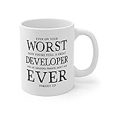 Perfect Printables Worst Developer Ever Mug, Funny Computer Programmer Gift, Best Software Coding Hidden Message Gag Coffee Cup, Sarcastic Secretary Joke Novelty Present