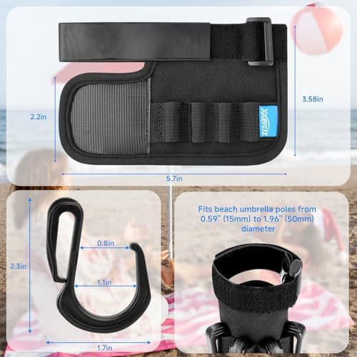- Adjustable Size Design: This 4-prongs beach hook is adjustable designed to firmly fit beach umbrella from 0.59" (15mm) to 1.96" (50mm) diameter beach umbrellas poles. Allowing you to choose how high or low you would like to hang your stuff.