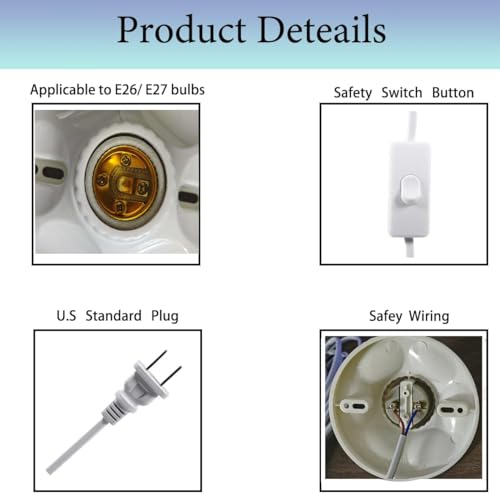- 10ft Cord with On/Off Switch – 10ft extended cord provides flexible placement.Convenient button switch controls lights remotely—no need to unplug. Designed for hassle-free setup, simply connect the wires and secure the socket for a quick lighting solution.