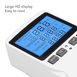 Enhanced Visibility Display: The thermostat features a blue-backlit LCD screen with oversized digits (25mm height) for clear viewing in low-light conditions. The anti-glare coating reduces eye strain during prolonged monitoring sessions Precision Temperature Management: Equipped with a 1.5m probe offering ±0.5℃ accuracy, the unit maintains consistent climate control. Advanced algorithms prevent temperature fluctuations beyond user-set parameters Versatile Climate Adaptation: Operating across extreme temperatures (-40℃ to 120℃), the controller automatically switches between heating/cooling modes. Dual relay outputs support both refrigeration and heating equipment connections Tool-No Setup: Designed with standard plug-and-play installation, the unit connects directly to power outlets via included socket adapter. The compact housing (85×65×35mm) mounts vertically or horizontally without wiring modifications Multi-Environment Application: From reptile terrariums requiring precise basking heat to fermentation chambers needing stable warmth, the controller manages diverse ecosystems. presets accommodate wine cellars (12-18℃) and mushroom cultivation (20-27℃) with customized hysteresis settings