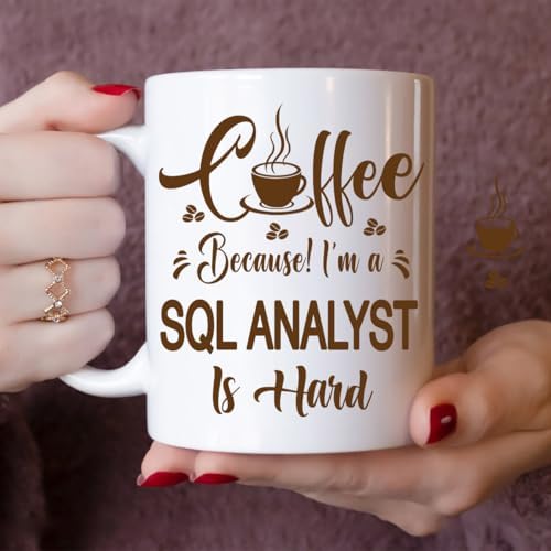 - [Humorous Gift for Sql Analyst Professionals]: This 11oz white ceramic mug features the funny quote: Coffee, Because! I'm a Sql Analyst Is Hard, perfect for Sql Analyst who rely on coffee to power through their challenging days.