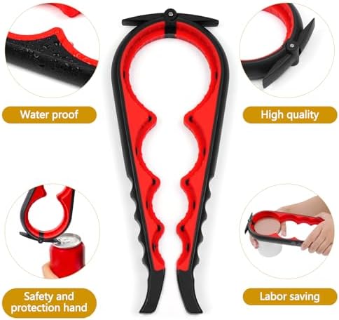 Jar Opener and Lid Remover, 5 in 1 Anti skid Rubber Bottles Openers, Kitchen Essential for Small Hands or Seniors(Red)
