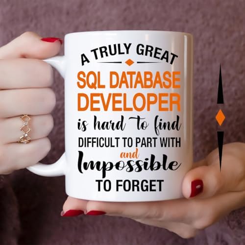 - [Heartfelt Gift for Sql Database Developer]: This 11oz white ceramic mug features the touching quote: A Truly Great Sql Database Developer Is Hard To Find, Difficult To Part With And Impossible To Forget, perfect for showing appreciation to a Sql Database Developer who has made a lasting impact.