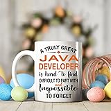 - Celebrate the remarkable dedication and influence of a truly great Java Developer with this beautifully designed 11oz white ceramic coffee mug. Featuring the heartfelt quote: A truly great Java Developer is hard to find, difficult to part with and impossible to forget, this mug makes a perfect gift for birthdays, retirement parties, farewell gatherings, or as a simple token of gratitude.Crafted from durable, high-quality ceramic, it’s microwave and dishwasher safe—making it both practical and sentimental. Whether you’re showing appreciation for a mentor, manager, teacher, or healthcare worker, this mug captures the essence of their impact.Each cup is carefully packaged to ensure safe delivery and ready gifting. Let someone special know they’ve made a difference. Give them a gift that reminds them every morning just how unforgettable they are.