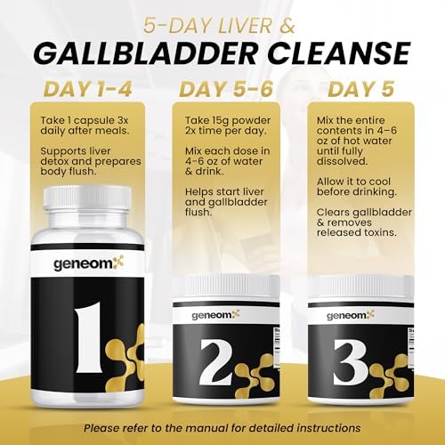 - 𝐒afe, 𝐆entle & 𝐏reventive 𝐇ealth 𝐒upport: GeneomX is a 5-day gallbladder, liver detox and cleanse program that’s gluten-free, non-GMO, and free from artificial additives—making it safe for cleansing with lasting benefits. This effective formula helps flush out toxins, improve bile flow, and reduce the risk of fatty liver disease, gallstones, and sluggish digestion. It also promotes metabolic health, enhances nutrient absorption, and supports immune function.