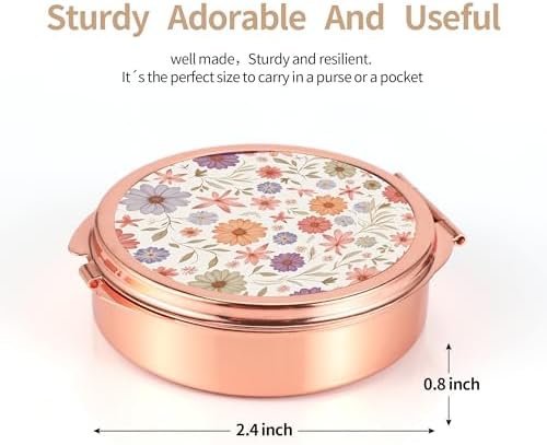 Dynippy Pill Case Pill Box with Mirror Pocket 3 Compartment Medicine Case Vitamin Pill Organizer for Pocket Purse and Travel (Round, Rose Gold-Wildflower Pattern)