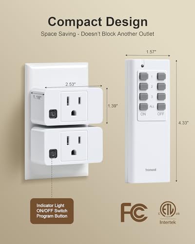 - Space Saving - Compact Design, fits well in tight spaces. The remote outlet takes up only 1 wall socket without blocking the other sockets. Smaller than most of other outlets, easily installed in hard-to-reach plugs and behind furniture, fitting snugly into walls.