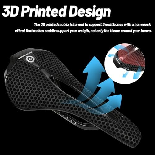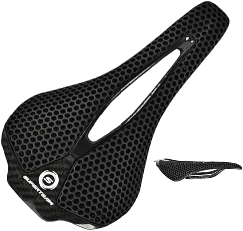 Superteam Carbon Fiber Bike Seat, 3D Printed Bike Saddle Cushion Shock Absorbtin Breathable Bicycle Saddle for BMX, MTB, and Road Bikes - Short Nose Design for Men and Women