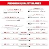 - 【Professional-Grade Blade Materials】These 10 different blades are crafted from 3 different heavy duty material: chrome vanadium steel, HSS and BI-metal. the blades stay sharp for long-lasting performance. The sturdy frame provides stability while cutting through various materials effortlessly