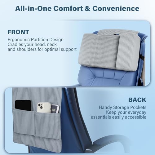 - Neck Pillows for Recliners with PHigh-density Sponge: Moderate hardness sponge to providing excellent long-lasting support and anti-tilt experience for the head. Even when dozing off, the head can be supported and the cervical vertebrae will not be injured suddenly. The extra designed pockets can hold items, which is very convenient. ocket
