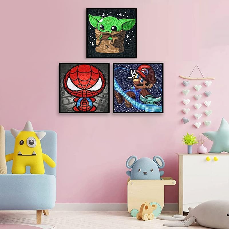 LWZAYS Diamond Painting Kits for Kids Diamond Art Gem by Number Kits Arts and Crafts for Kids, Mosaic Kits DIY Full Drill Painting Kit for Home Wall Decor 4 Pieces 6" X 6"