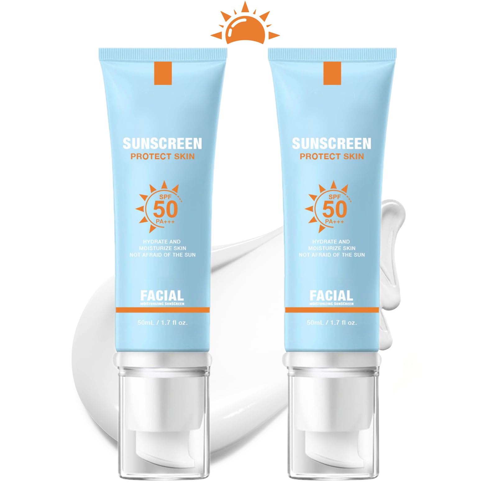 2PC Tinted Sunscreen for Face SPF 50+ PA++++, Hydrating Sunscreen for Face and Body, No Sticky Feeling, Moisturizing, Against UVA and UVB for All Skin Types, Travel Size
