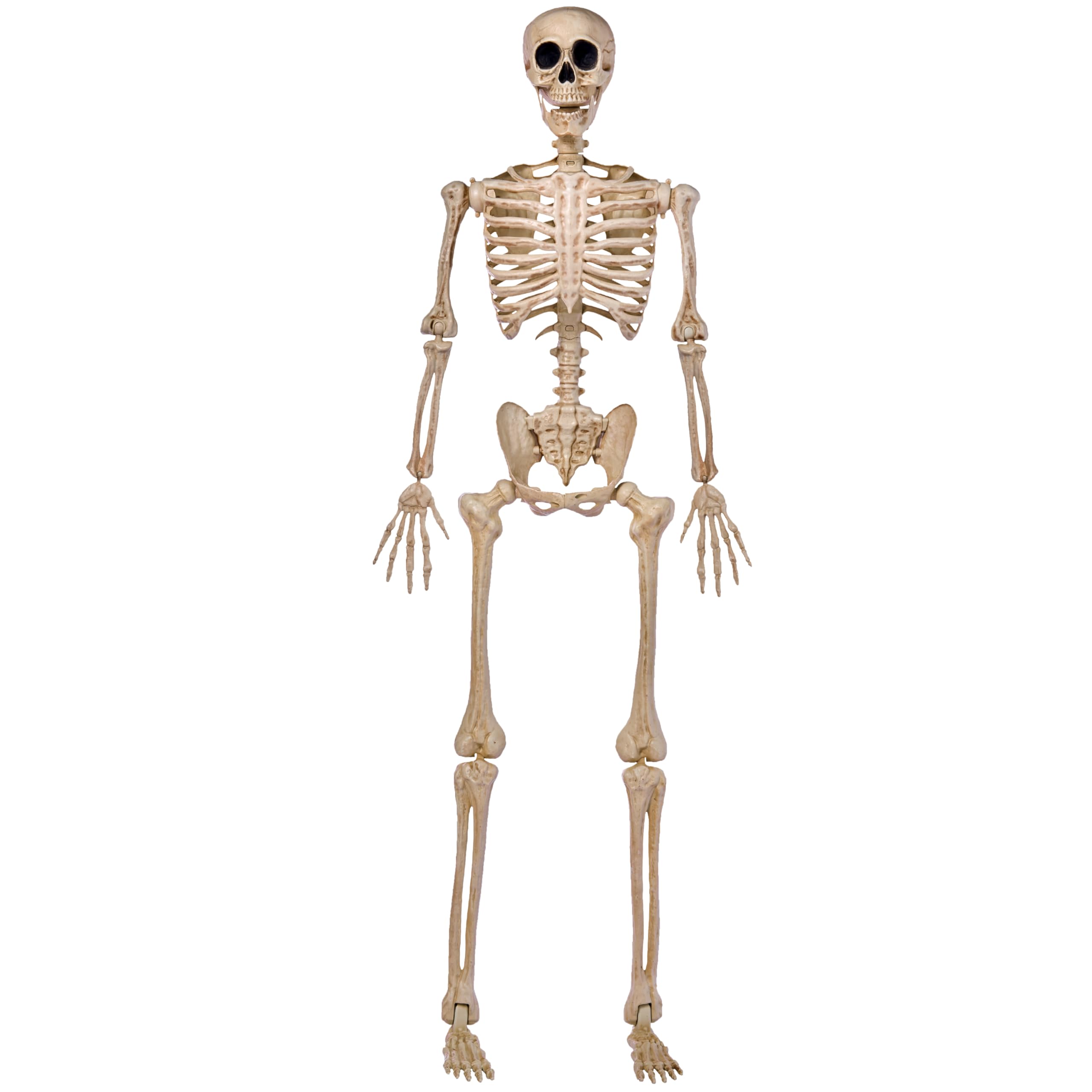 - Realistic Life Size Skeleton. Our Halloween skeleton life size measures 5 ft (152CM), aging color bones, providing a realistic and eye-catching addition to your large skeletons Halloween decor.