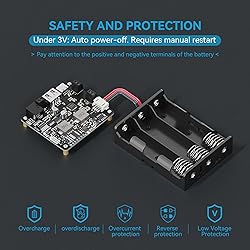 65W PD/QC Fast Charge - Type-C port supports PD/QC/FCP/PE/SFCP protocols (9V/12V input), charging efficiency up to 94%. Dynamic MPPT Tracking - Auto-optimizes solar input (5-24V) via dial switch, 77% solar conversion efficiency. Dual Battery Expansion - Connect 18650 batteries via 3.5mm terminal or PH2.0-4P port, supports simultaneous charge/discharge. Smart Power Management - 5V/3.1A regulated output (USB-A + terminal), ideal for powering Arduino/STM32 projects. 6-Layer Protection - Overcharge/over-discharge (4.2V±1% cutoff, 3.0V±1% protection) + reverse polarity alarm + low-voltage lock.