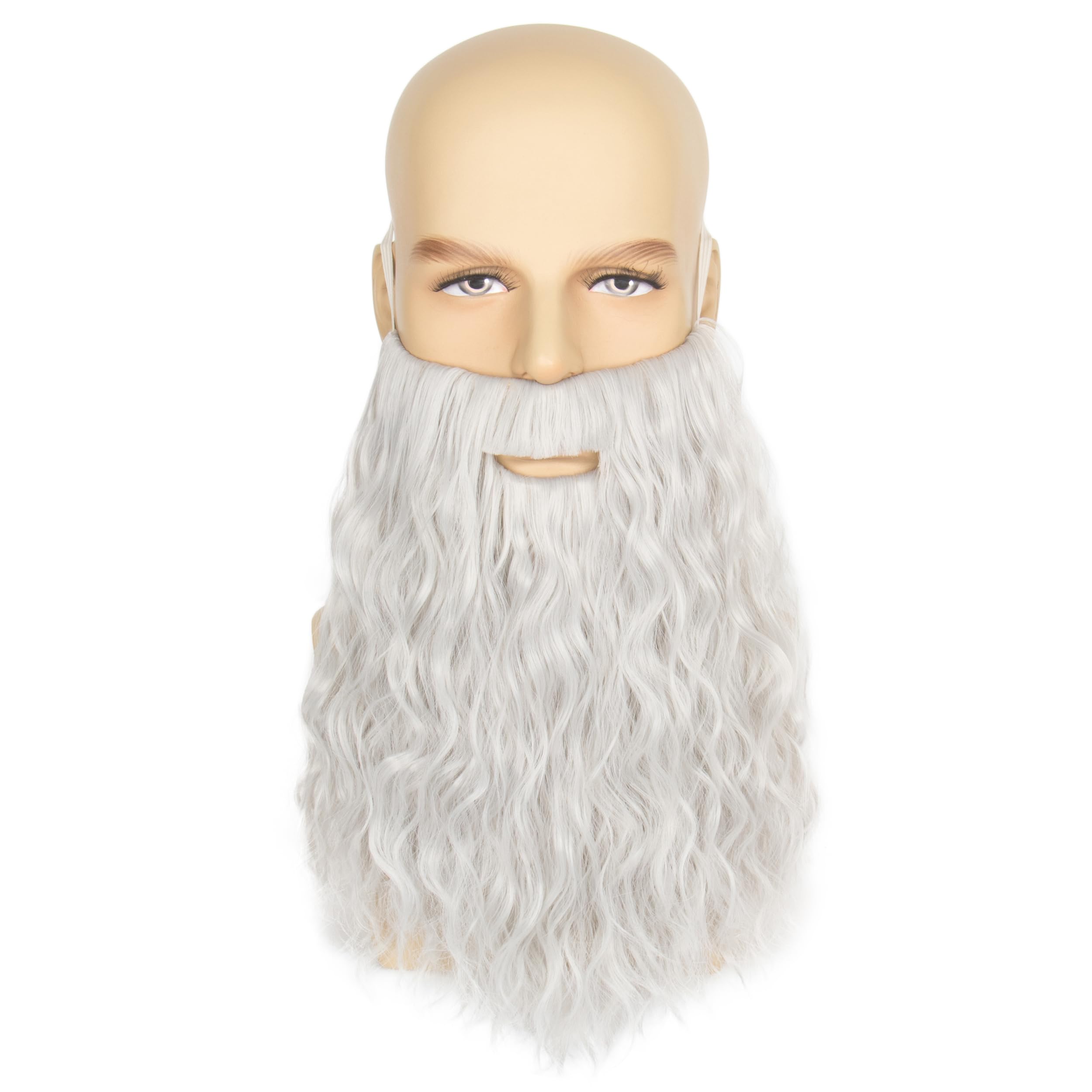 Yan Dream White and Gray Fake Beard with Mustache Costume Facial Hair Set for Men’s Cosplay Party Halloween