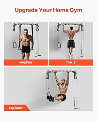 Pulley Power System: Newly upgraded, this heavy duty steel chin up bar features a double pulley design, supporting 15+ exercises such as high pull-downs and triceps extensions. Paired with 70in/90in metal ropes, it offers more versatile usage 10 Professional Grip Positions: By adjusting wide, narrow, and neutral grips, you can target your back, arms, and core muscles with precision. This wall mounted chin up workout training station allows you to train every inch of your muscles, easily achieving your perfect physique 440LBS Carbon Steel Frame: This pull up bar is made from heavy-duty carbon steel with 1.4mm thick powder coating, rust and corrosion-resistant. Max weight capacity is 440lbs, ensuring security and stability. Perfect for home or gym environments, fulfilling all your exercise requirements Professional Accessories: Includes 2 hanging rings and a variety of accessories. Our heavy duty wall mounted pull up bar can be used for pull-ups, resistance bands, ring exercises, and more. Accessories include pulleys, bars, triceps ropes, and more, allowing for flexible combinations 1.25IN Anti-Slip Handles: With a total width of 50 inches and 1.25-inch knurled grips, the home gym workout pull up bar provides anti-sweat texture to reduce slipping during intense exercise. Perfect for home use as a pull-up bar