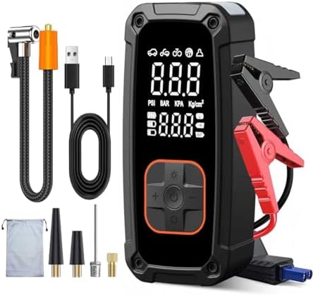 - Safe & Portable: Compact enough to fit easily into a pocket or bag, air pump serves dual purposes: tire inflator inflates tires and boosts vehicle ignition when the car's battery is weak. Perfect for adventures and daily commutes, it's especially useful during the holiday season, making a practical and considerate choice for loved ones