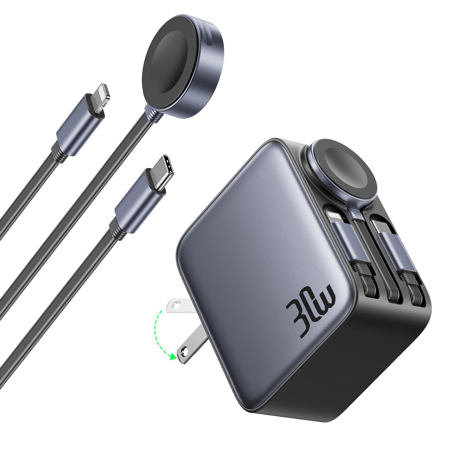 - 【Powerful and Safe Wall Charger】This phone charger wall plug uses advanced gallium nitride (GaN) technology and efficient GaN-6 chip, ensuring fast charging for both i Phone and Android devices. It intelligently matches safe current, and has reverse charging protection, overvoltage protection, and over-temperature protection to ensure safety,retractable chargers for multiple devices.