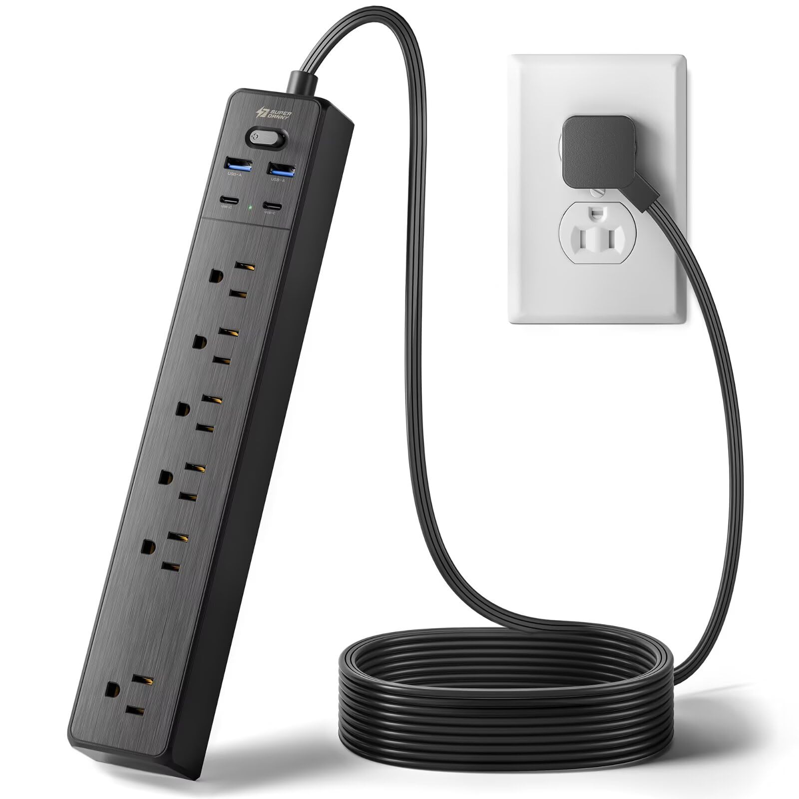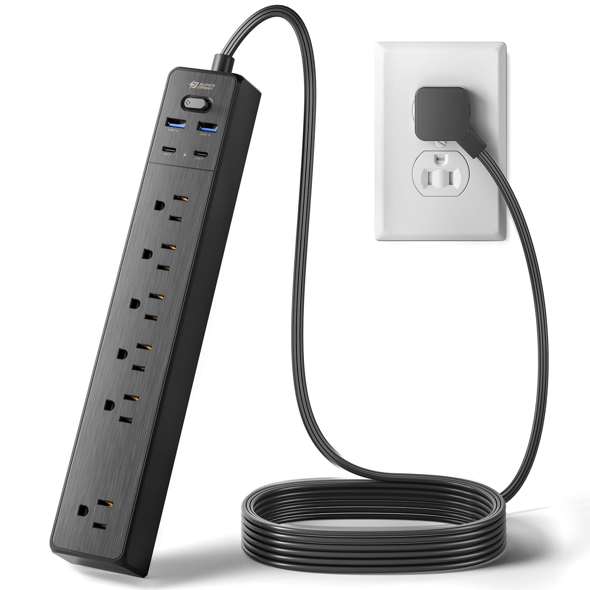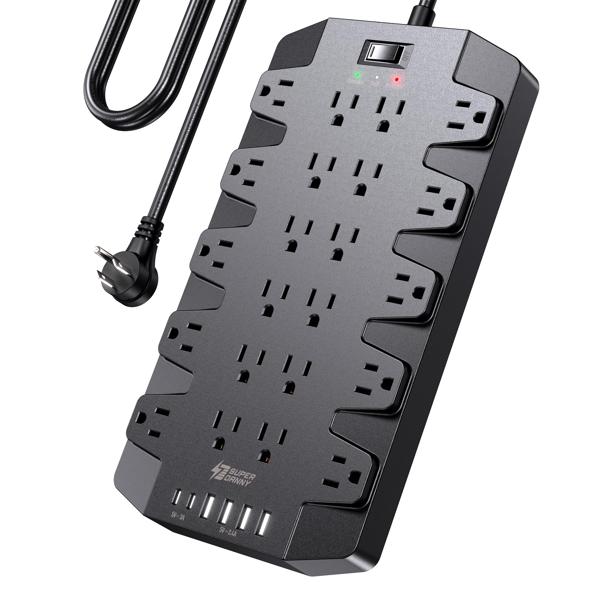 - 12 IN 1 Power Strip with USB Ports: Features 8 AC outlets, 2 USB-C ports, and 2 USB-A ports to give everything you need to power up all of your electrical appliances. The 4-side layout prevents power outlet obstruction, allowing simultaneous use of multi USB outlets and AC ports. Designed with extra space (1.65 inch) between outlets to accommodate even the largest plugs.