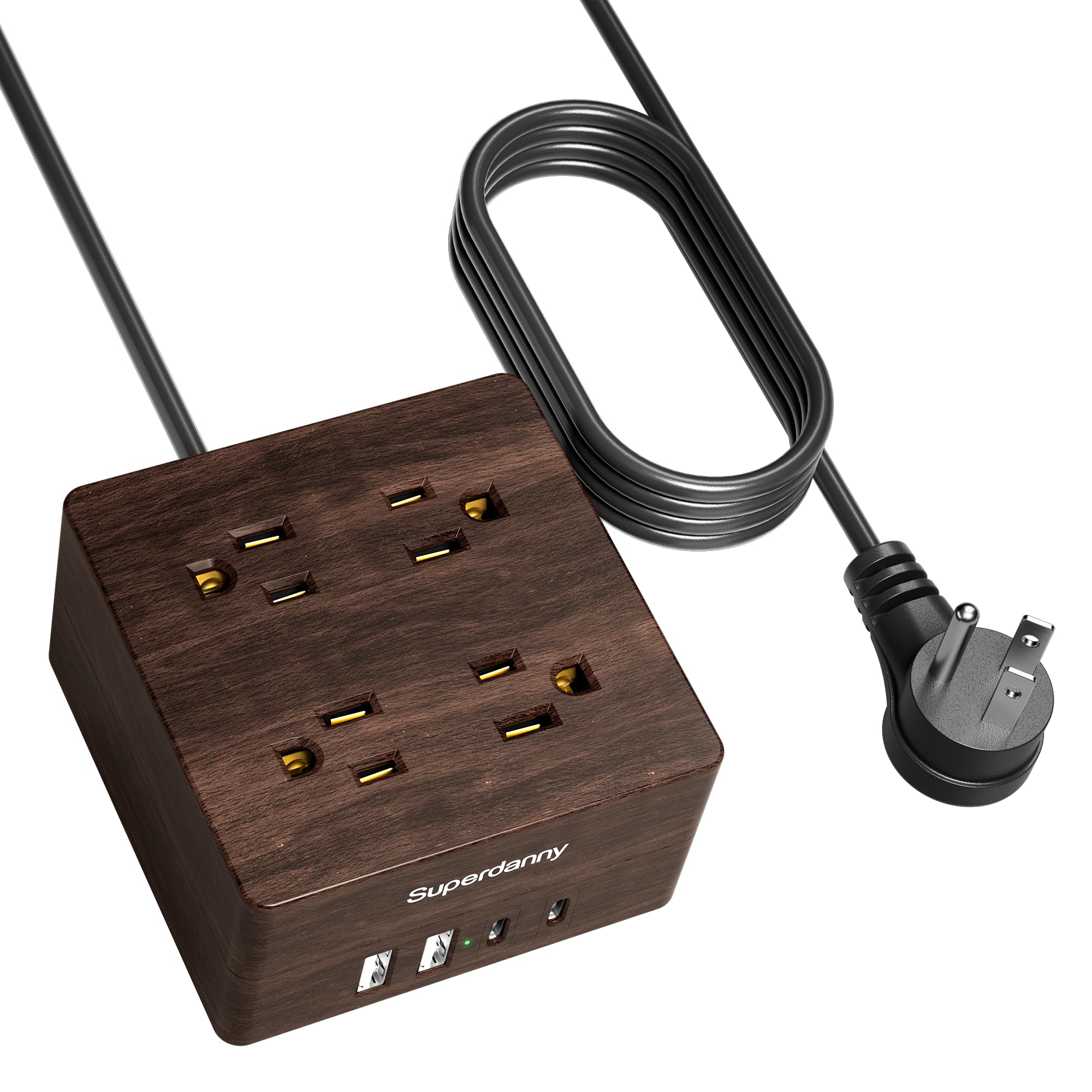 Brown Extension Cord 10Ft, Flat Plug Power Strip Surge Protector, 8 Outlet 4 USB Ports (2 USB C), Wall Mountable, Decorative Wood Charging Station for Home Office Desk Accessories —Wood Grain