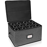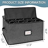 ★Premium Champagne Glass Storage Box - Measuring 17.3"L x 13.5"W x 10.2"H, it includes padded compartments and can hold up to 12 wine glasses. ★Durable Double-End Zipper - The box features a durable, wear-resistant double-end zipper. The zipper closure effectively keeps out dust and opens and closes smoothly in both directions for easy use. ★Sturdy Material Guarantee - The box is crafted from high-grade polyester and thickened cardboard. All fabrics used are environmentally friendly, ensuring peace of mind. ★Reinforced Handle Design - Both sides of the box are equipped with reinforced handles for easy use and storage. Contains label pockets for easy identification of items. ★Versatile storage solution - not only perfect for safely storing seasonal and collectible wine glasses, it's also ideal for organizing mugs, cups, glasses, and more.
