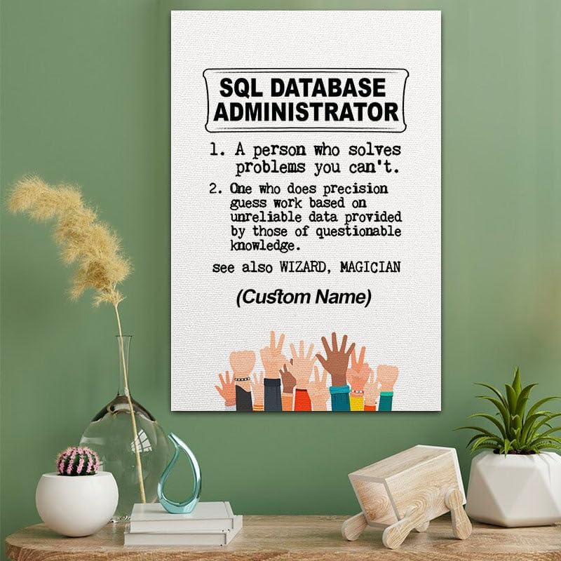 Customize Sql Database Administrator Definition Print Poster Wall Art, Sql Database Administrator Canvas Painting Ready to Hang Artwork for Office 12AZ2848