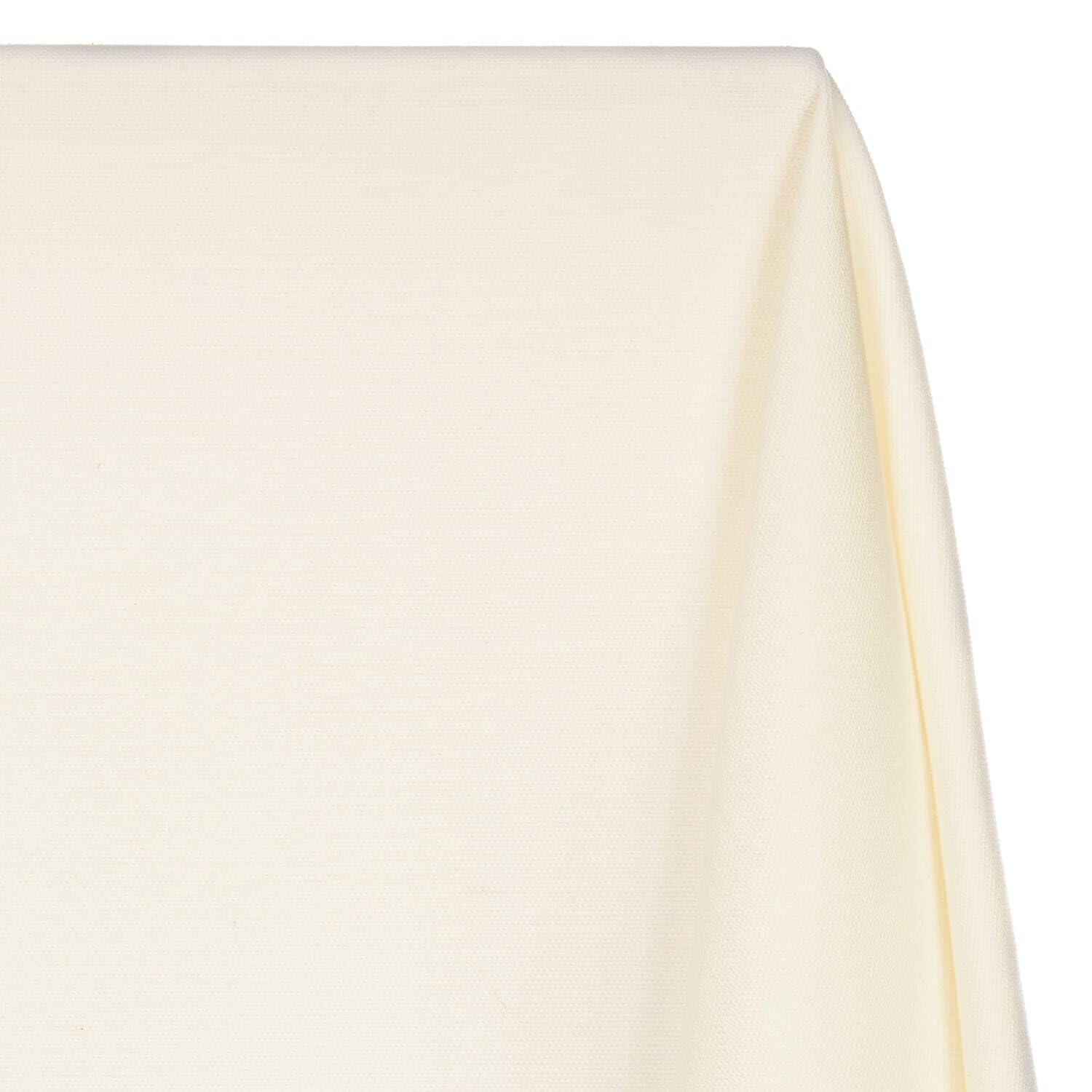 Medium Weight Weft Fusible Interfacing is a soft, non-stretch fabric made from 65% viscose and 35% polyester. Knit with added weft threads for stability, it features a polyamide dot glue backing that allows it to be fused to other fabrics with heat and steam. Designed to add light structure and comfort, this interfacing is suitable for use in a variety of apparel and decor applications. This fabric measures 60/61 inches in width, is 0.30 millimeters thick, has a fabric weight of 75 GSM, and weighs approximately 3.7 ounces per linear yard. Common uses include supporting garments such as shirts, dresses, baby clothes, and suits, as well as light decor items like curtains and table covers. Oeko-Tex Standard 100 certified.
