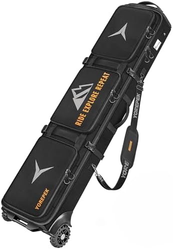 YOREPEK Ski & Snowboard Bag with Wheels, Upgraded All-Terrain Large Wheels, Extendable 160–175cm Water Resistant Padded Ski Bags for Air Travel with Backpack & Shoulder Strap, Mini Pocket for AirTag