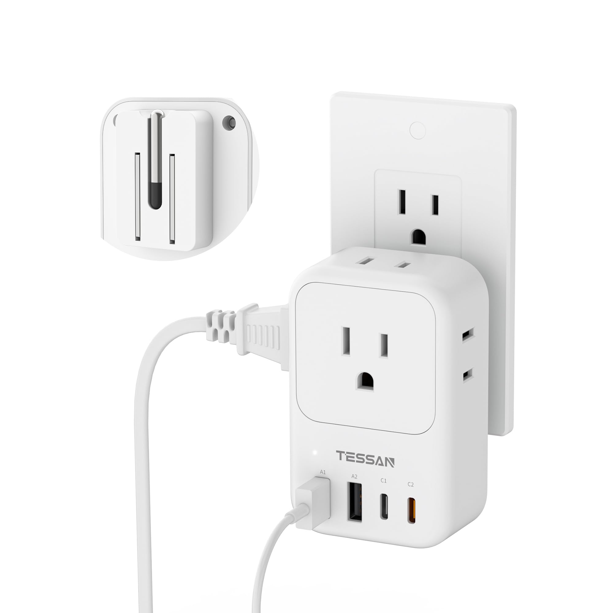 - [8 in 1 Charging Station for Multiple Devices] - Power up to 8 devices simultaneously with 3 AC outlets (1875W Max) + 5 USB ports (3 USB-C + 2 USB-A). The slim profile for this usb charger block multiple ports allows it to be stowed behind furniture or in a suitcase, perfect for hotels or dorm rooms.