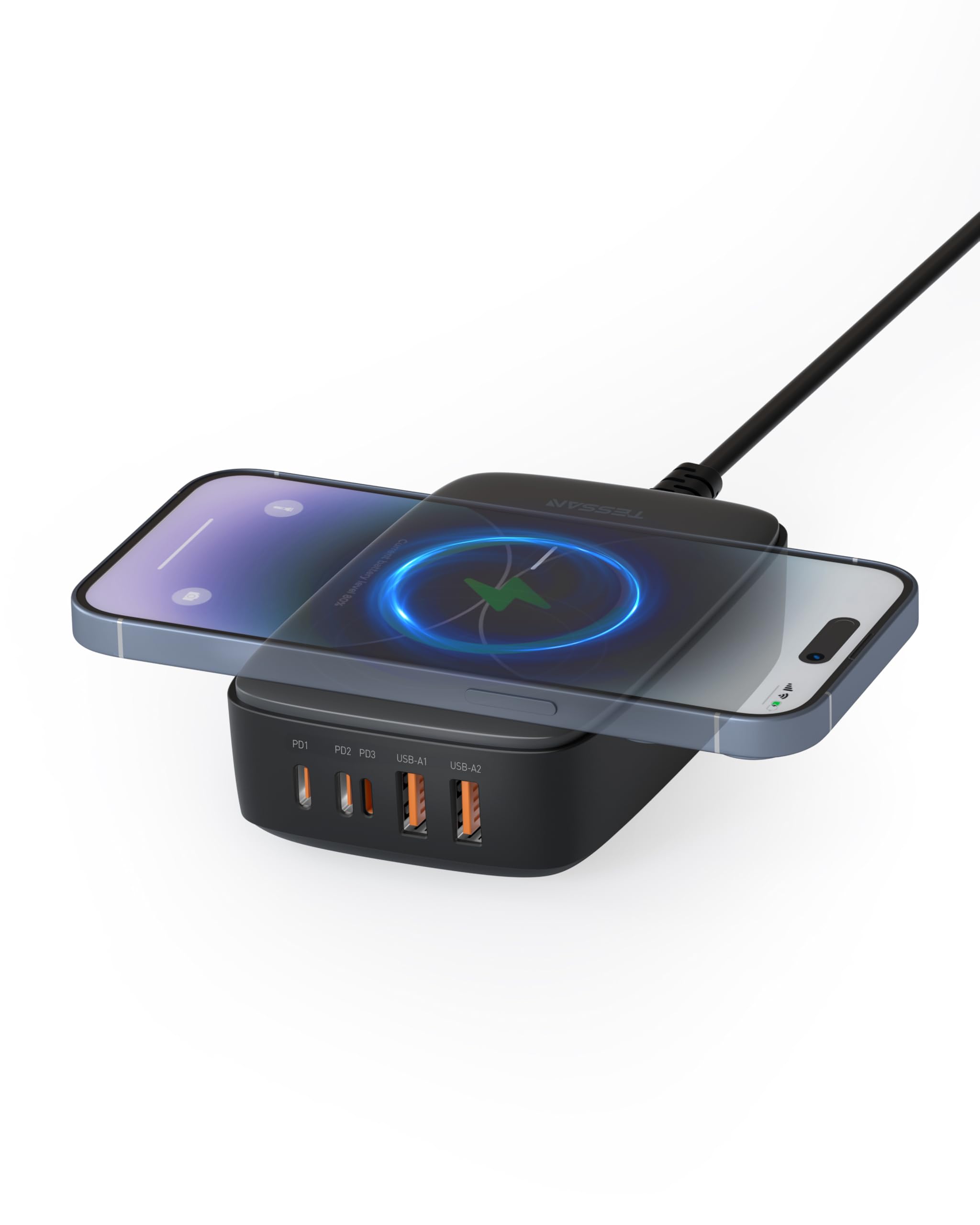 - [130W USB Fast Charging Station] - This charger station features 3 USB-C ports (100W Max single port) and 2 USB-A ports (30W Max single port) and is compatible with PD 3.0 and QC 4.0 protocols. Built with GaN technology, it delivers faster charging, higher energy efficiency and better heat dissipation performance than traditional chargers, making your daily charging safer and more reliable.